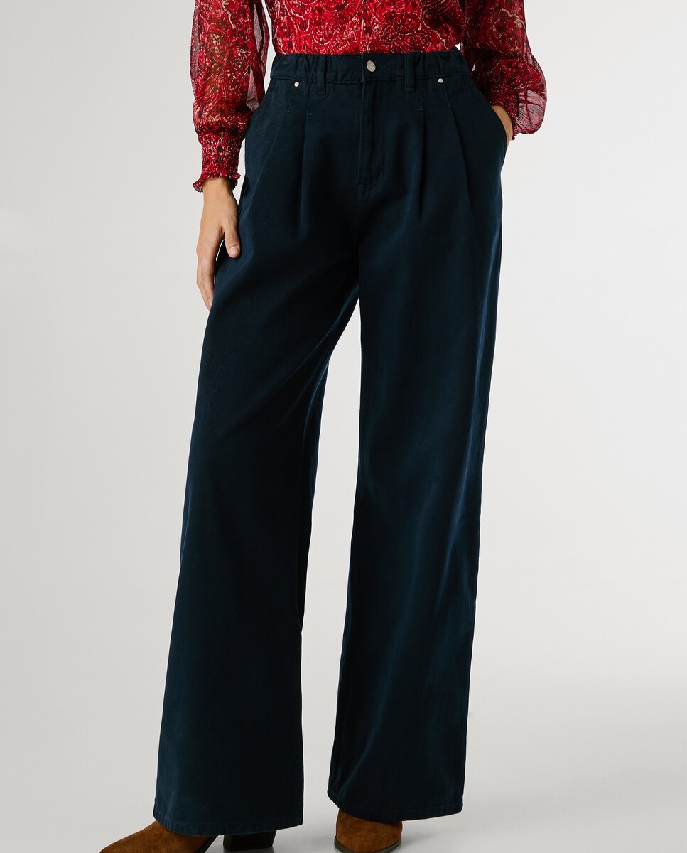 Vaquero campana de mujer tiro alto con cierre doble botón