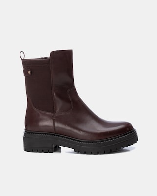Botines en napa cuero con detalle de piel tipo coco con hebilla