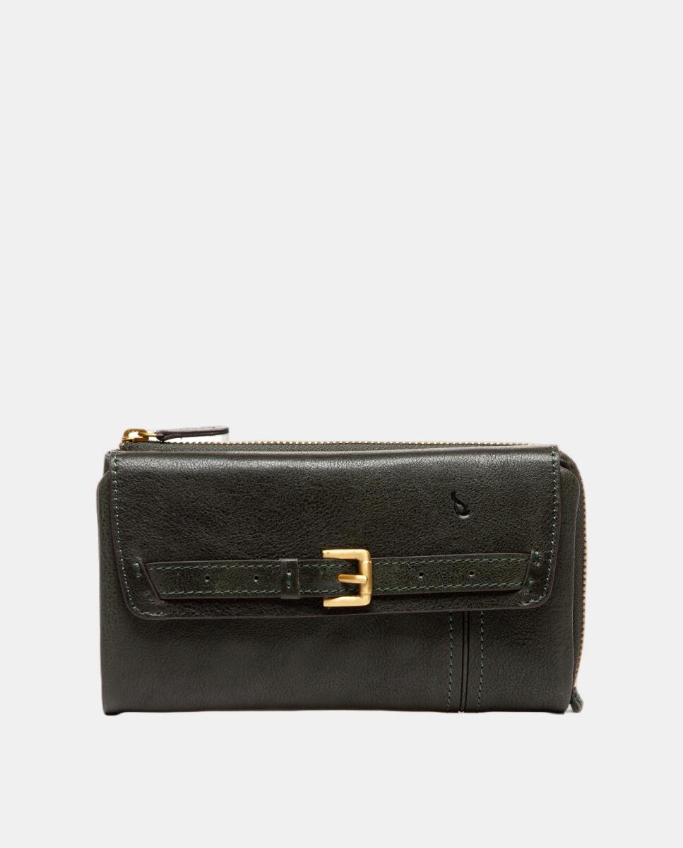 Monedero billetero mujer con cremallera en piel grabada color acqua