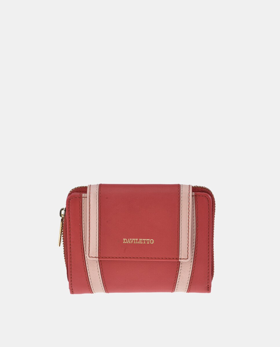 Monedero billetero mujer DAVILETTo con cremallera en piel color negro y rojo