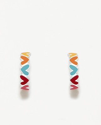 Pendientes de aro Hoops Corazón de plata y esmalte rosa