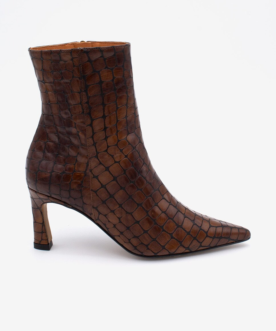 Ángel AlarcónBotines de mujer de piel print cocodrilo de punta fina, tacón de aguja y cremallera interna Zaira2 ColoresAñadir