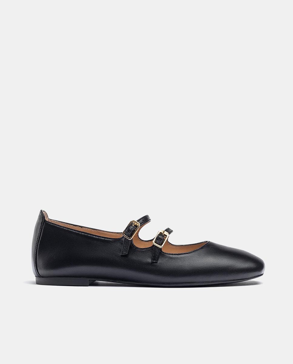 Bailarina mary jane doble tira de mujer de piel