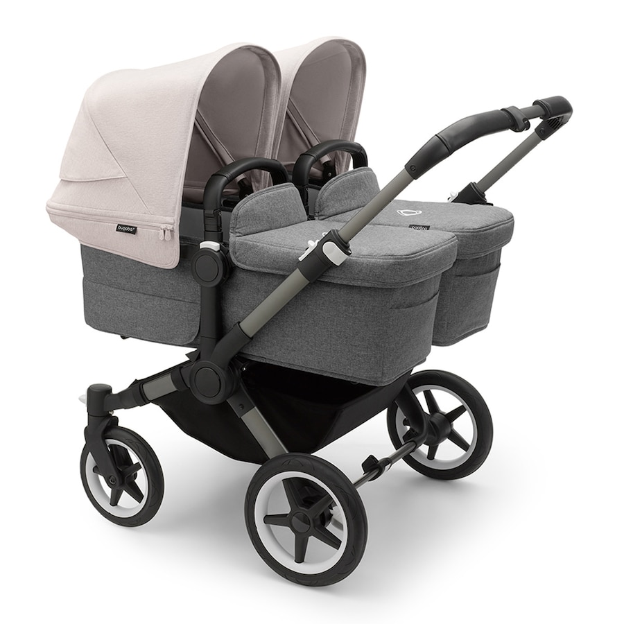 Carro de bebé Bugaboo Donkey 5 Twin Mix Match con capota, pack de extensión y funda de capazo grafito/gris/blanco niebla/gris melange