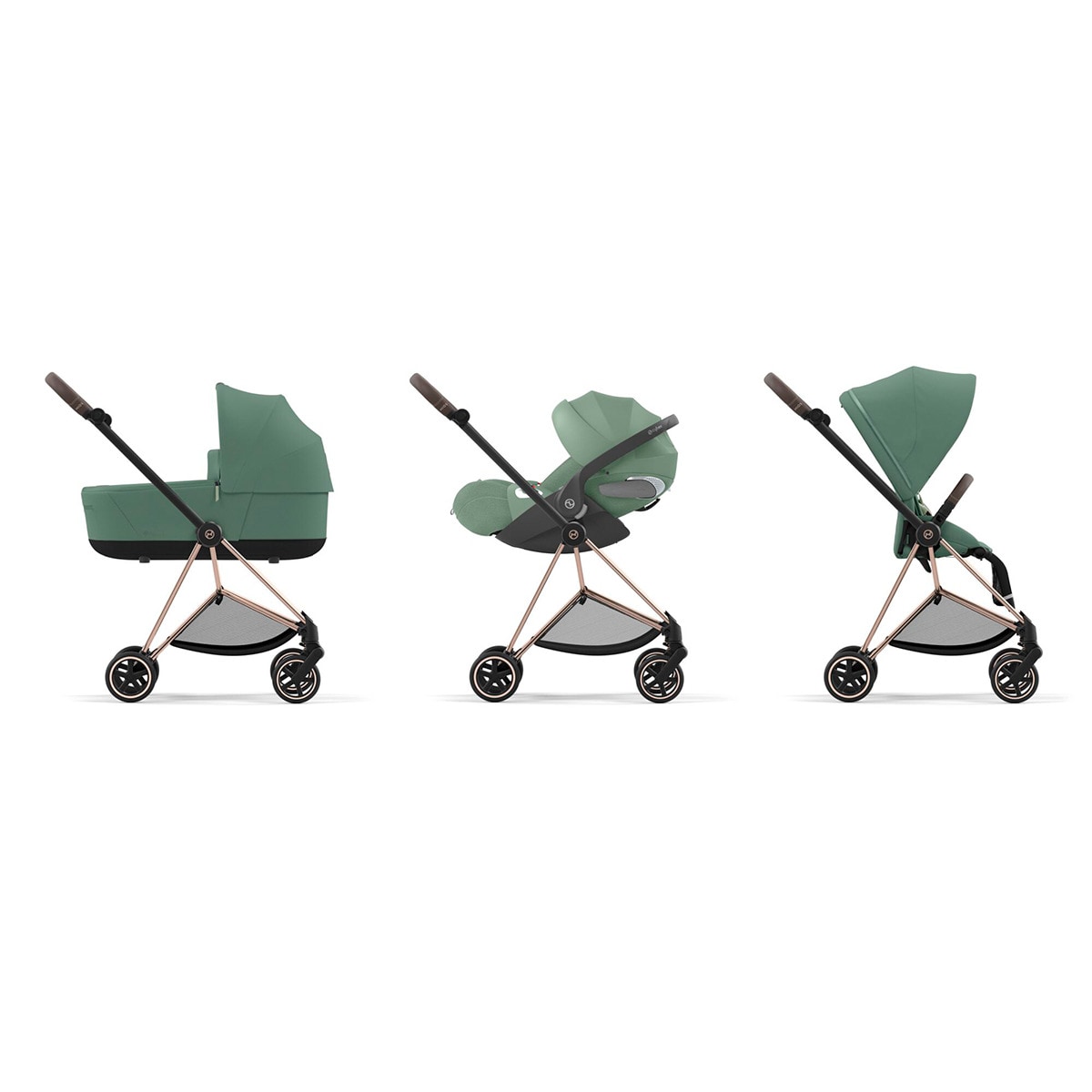 Carro de bebé trío Cybex MIOS con Chasis Rosegold en verde