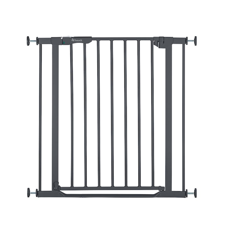 El Clear Step Autoclose 2 no sólo es adecuado para pasillos con una anchura estándar de 75-80 cm, sino que también puede ampliarse hasta 122 cm con las extensiones de 9 cm y 21 cm , disponibles por separado. Con el accesorio Y-Spindel de hauck, puedes montar la puerta sobre barotes redondos.