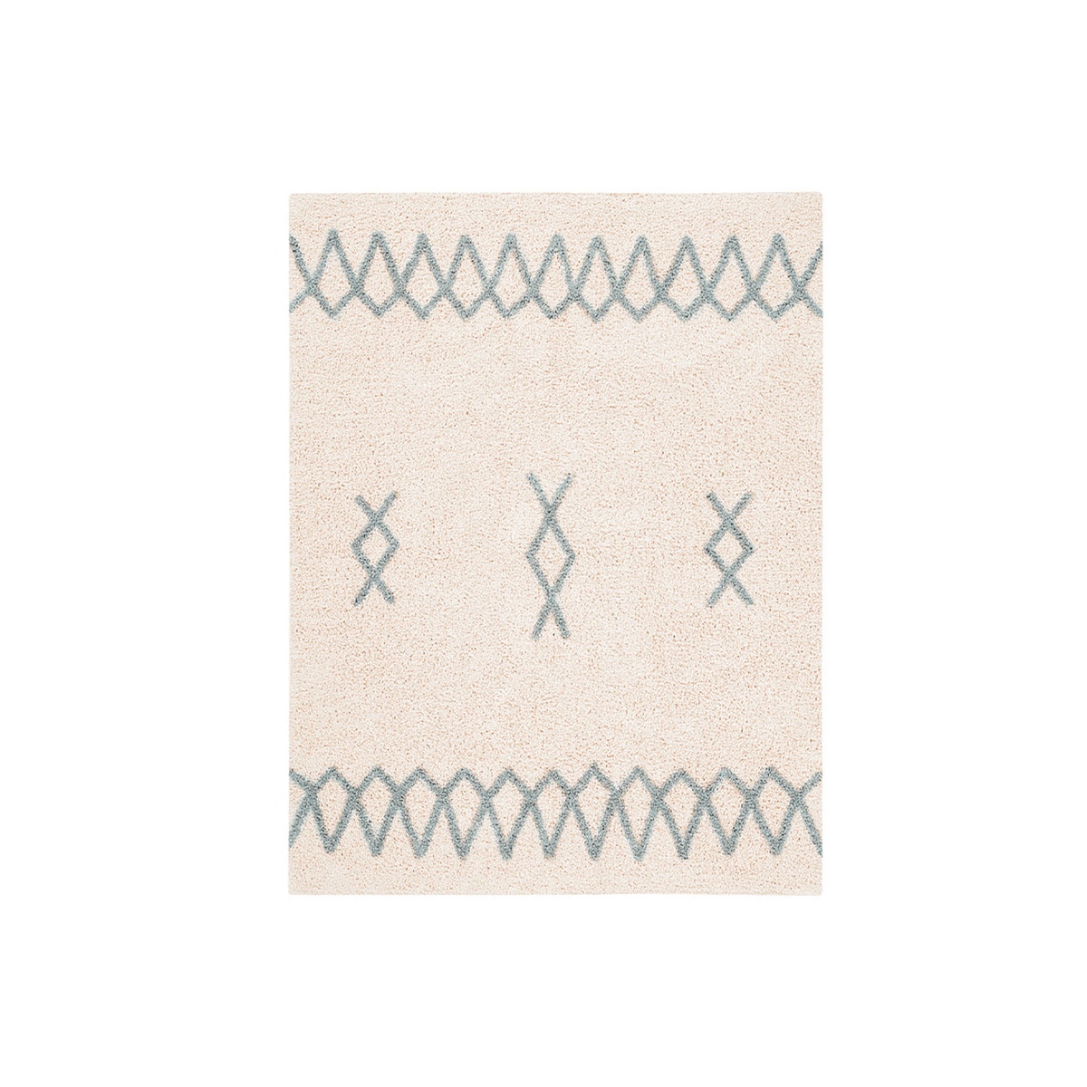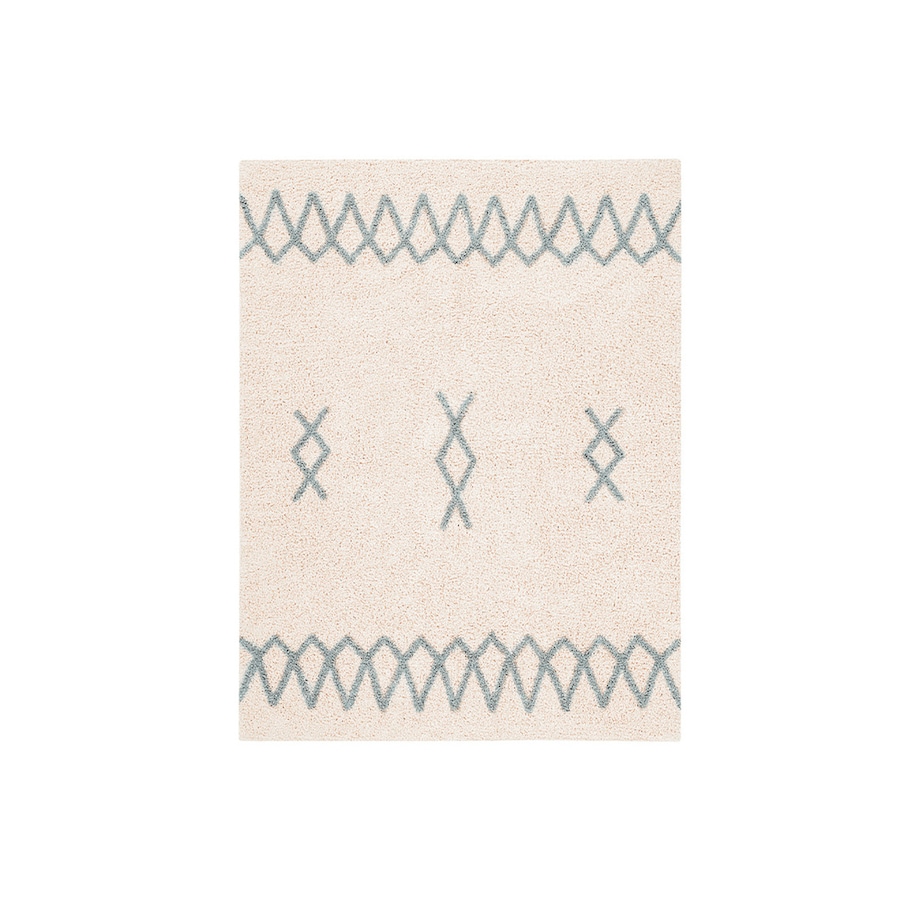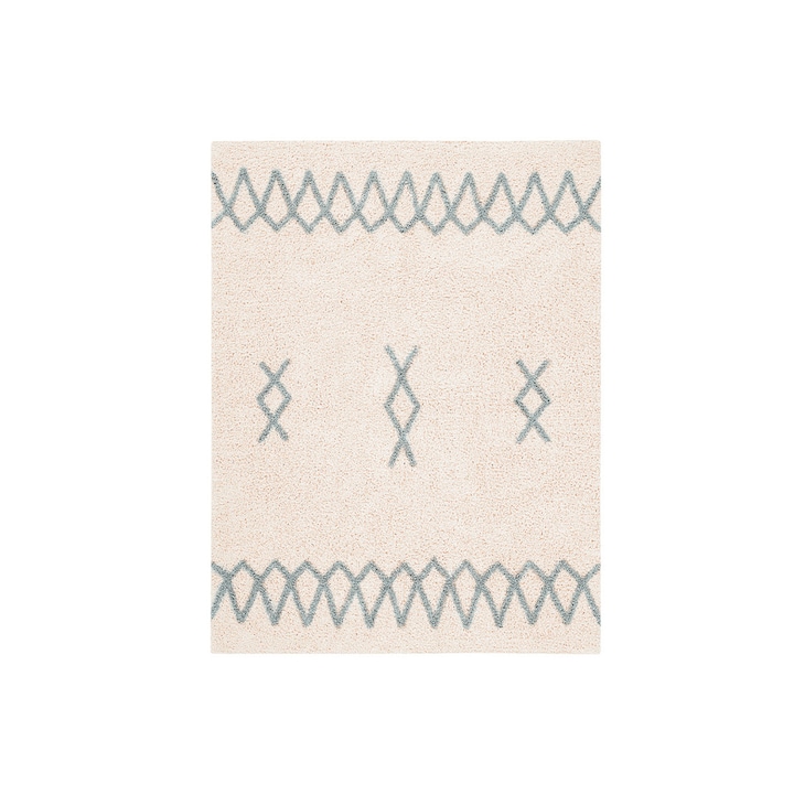 Una alfombra de estilo bereber en tonos neutros, ideal para dar un toque 'cool' a la habitación de los niños. Con base natural y diseño étnico, está disponible en azul y rosa vintage.