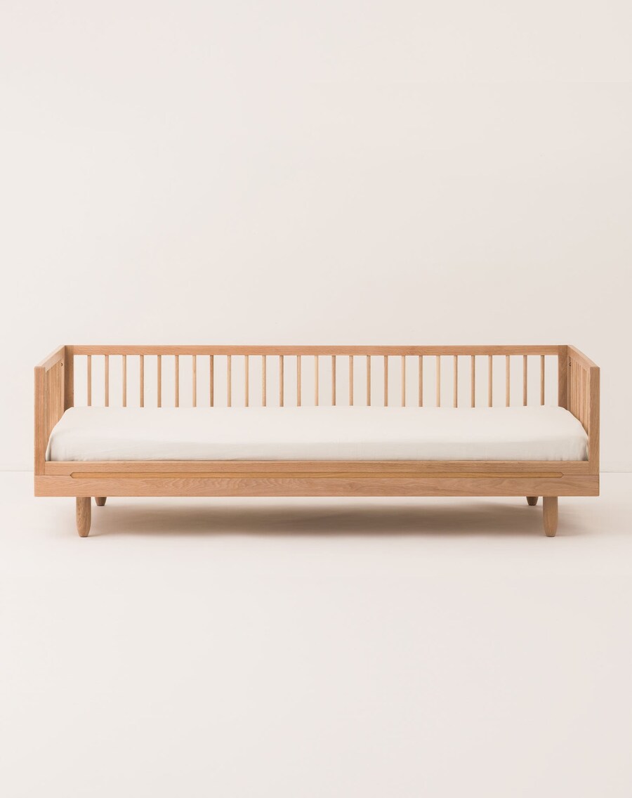 La cama Junior Pure de madera de roble maciza, es la mejor alternativa para aprender a dormir como los mayores. Una cama bajita, a escala de tus hijos para que se sientan cómodos, seguros y arropados. Y para dormir más tranquilos podéis añadir el kit de seguridad para la cama junior Pure.