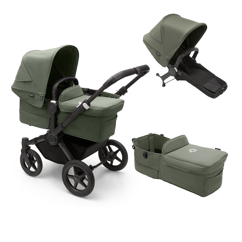 BugabooCarro de bebé Bugaboo Donkey 5 Twin completo con pack de extensión y funda de capazo negro/ verde bosqueAñadir