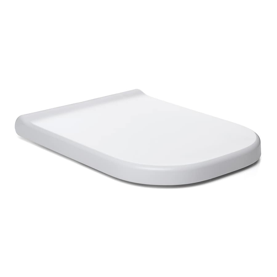 Tapa WC con forma cuadrada, blanca, realizada en material termoplástico de alta resistencia al impacto.