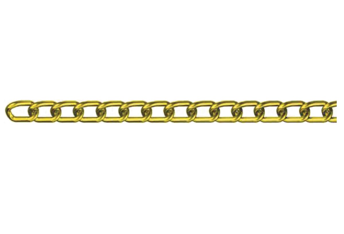 Cadena barbada decorativa, versátil y duradera. Acabado latonado.