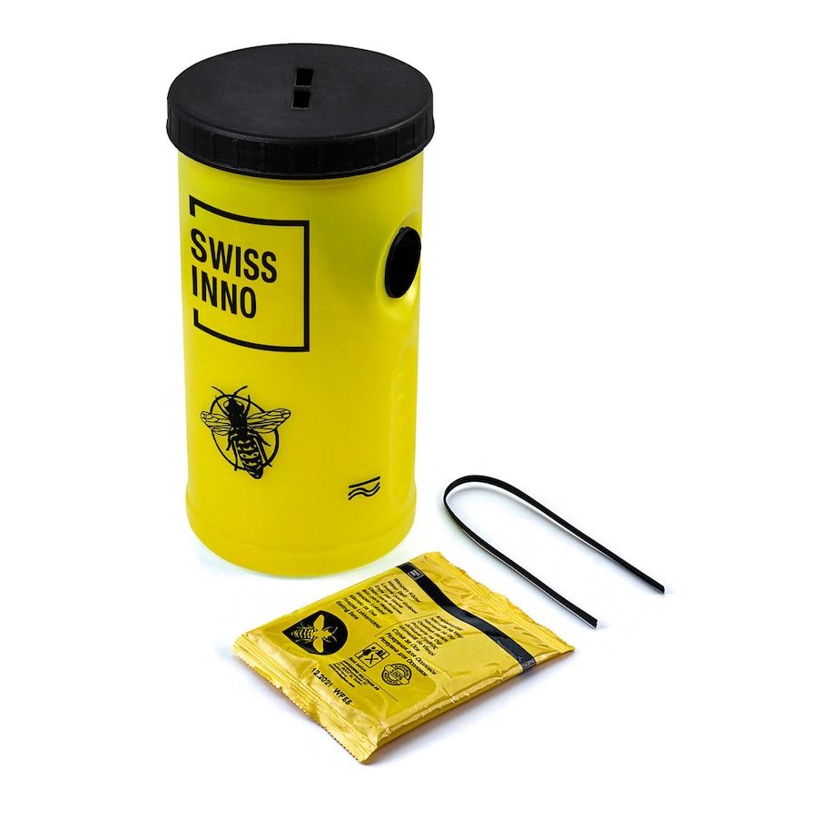 Trampa para avispas eficiente con cebo natural. Totalmente libre de productos químicos, la trampa para avispas SWISSINNO, con un cebo natural, atrae a las avispas y las ahoga en el agua. Un diseño ingenioso hace innecesario el uso de veneno y, por lo tanto, protege el medio ambiente. Además, el cebo disuade a las abejas y evita que vuelen hacia la trampa. Por lo tanto, el cebo especial de la trampa para avispas es natural, inofensivo y asegura que ninguna abeja quede atrapada en la trampa. La lucha contra las avispas es fácil y eficaz con la trampa para avispas. La trampa se puede suspender a 5 o 10 m de la zona a proteger o colocar en el suelo.
