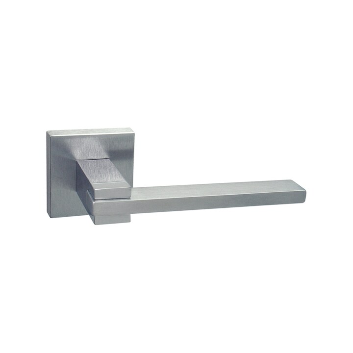 Juego de manillas material principal latón. Estilo moderno disponible en varios acabados. Roseta cuadrada 50X50 mm