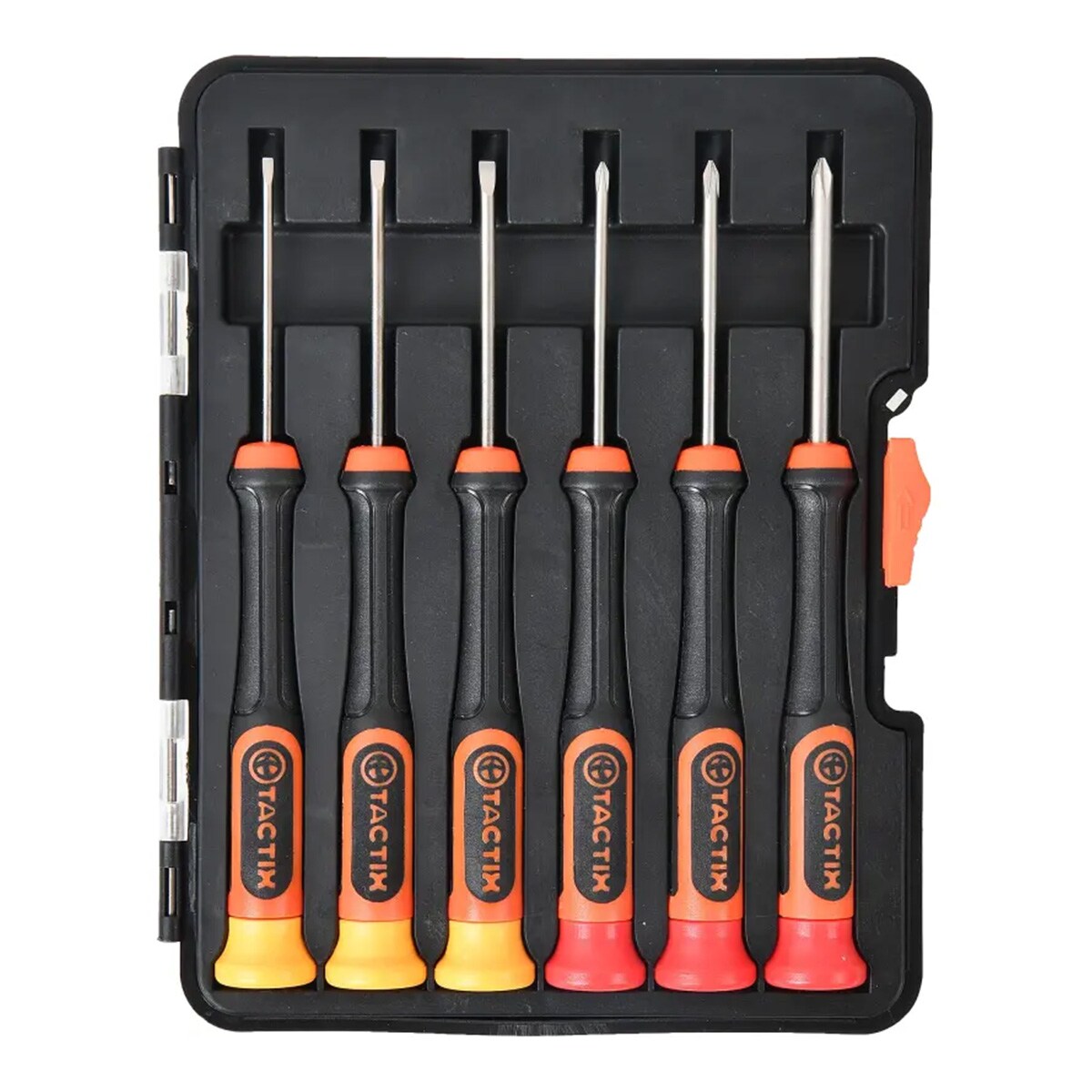 Compuesto por 3 destornilladores planos y 3 destornilladores de estrella.