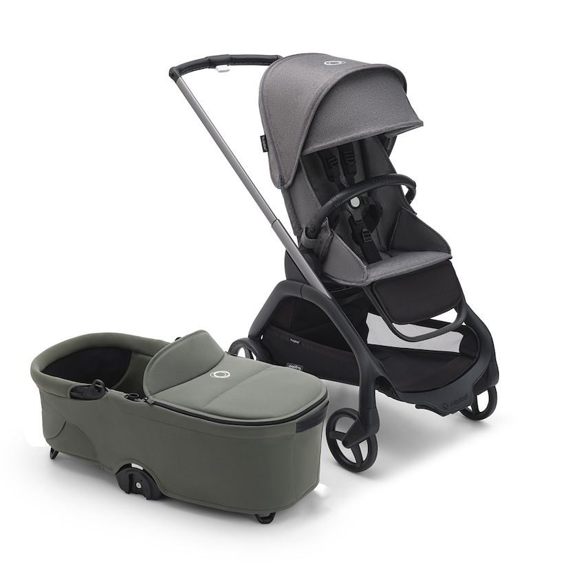 BugabooCarro de bebé Bugaboo Dragonfly base grafito/negro medianoche con capota verde bosque y capazo gris melangeAñadir