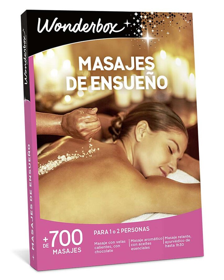 Wonderbox te ofrece un mundo de serenidad y de plenitud con el cofre "Masajes de ensueño". Olvídate de todo y entra en una burbuja de placer disfrutando de masajes únicos: masaje aromático con aceites esenciales, con velas calientes, tratamientos con chocolate...Cierra los ojos y déjate llevar por la atmósfera relajante de nuestra selección de masajes exclusivos. ¡Relajación total asegurada!