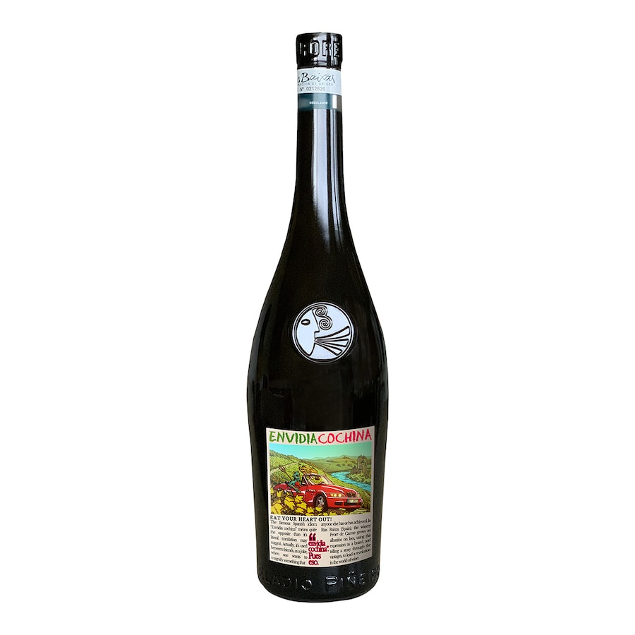El vino blanco Envidia Cochina Albariño 2023 es un vino de Denominación de Origen Rías Baixas, originario de Galicia, España. Se elabora con la variedad Albariño. Su proceso de fermentación es espontáneo y no se realiza fermentación maloláctica. Tiene una crianza prolongada sobre sus propias lías. Presenta un color amarillo pajizo, limpio y brillante, con una lágrima lenta. En nariz, ofrece aromas intensos de mineralidad fresca, flores y fruta blanca, con toques de fruta en almíbar. En boca, es goloso, fresco y salino, con gran volumen y untuosidad, dejando recuerdos de cítricos, hierbas aromáticas y flores blancas, con un final largo y yodado. Es un vino gastronómico que puede evolucionar favorablemente en botella. La etiqueta presenta un diseño que imita un recorte de prensa sobre la expresión popular "Envidia cochina" y cambia cada año, contando una historia a través de las añadas del cómic. Utiliza tinta termocrómica, que indica el punto óptimo para el consumo.