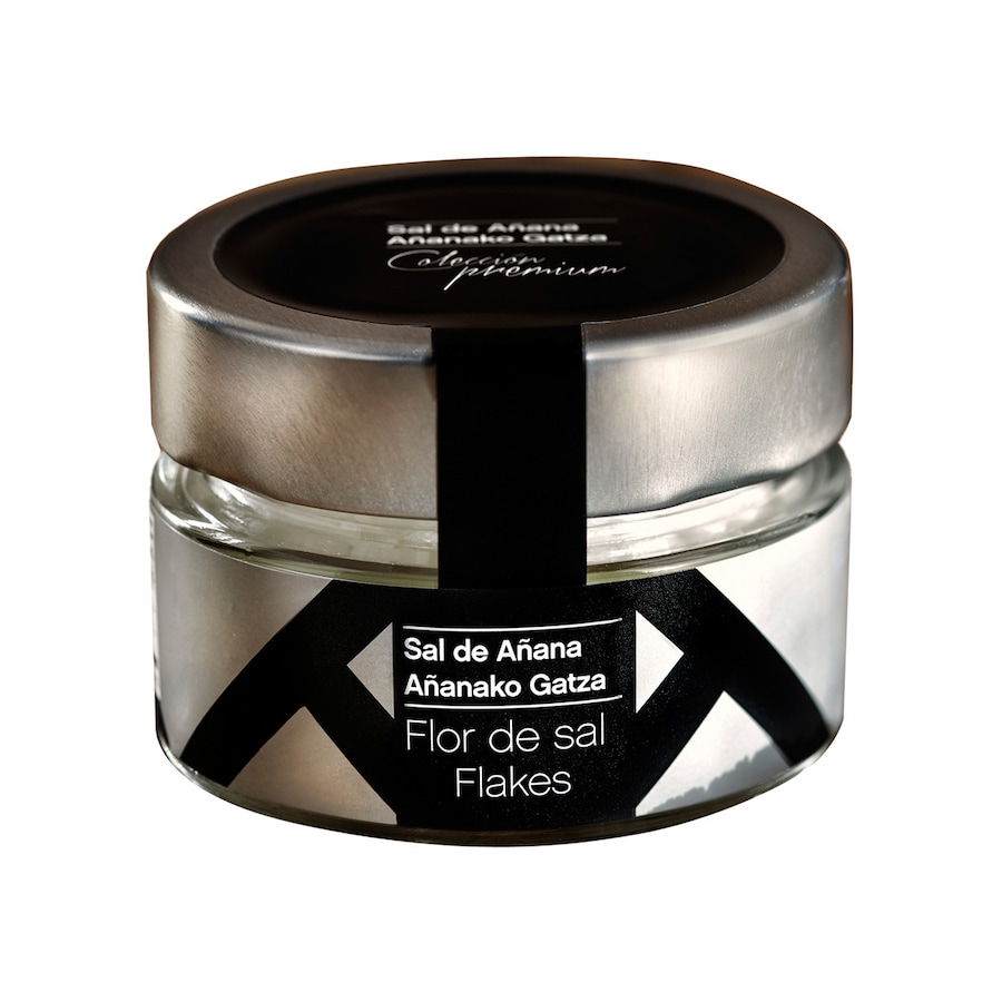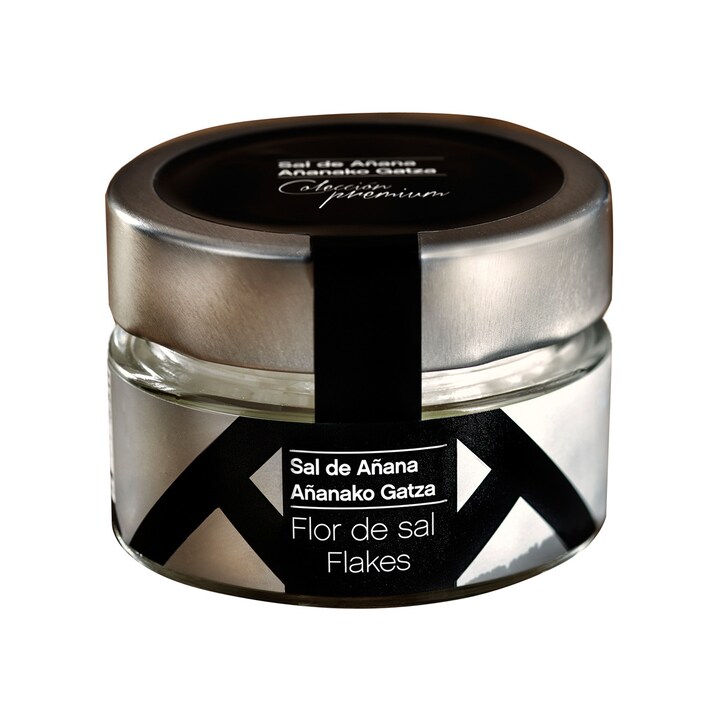 La Flor de Sal Artesana Añana es un producto gourmet que proviene de las Salinas de Añana, ubicadas en la provincia de Álava, en el País Vasco, España. Este tipo de sal se presenta en escamas con una textura crujiente, formada por láminas que emergen en la superficie durante el proceso de evaporación de la salmuera. Viene en un práctico tarro de 70 gramos, lo que la convierte en una opción ideal para realzar el sabor de los platos. Se recomienda especialmente su uso como toque final en la presentación de diversas recetas, aportando un sabor único y distintivo.