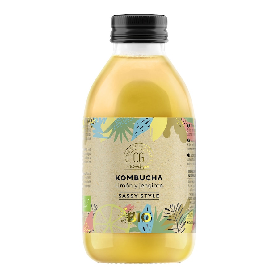 Kombucha viva y ecológica, elaborada con agua de origen volcánico y con sabor aromatizado con limón y jengibre macerados. 100% kombucha. La Kombucha es una bebida a base de té fermentado a partir de una colonia de levaduras y bacterias (SCOBY). El resultado es un refresco saludable y ligeramente carbonatado, rico en ácidos orgánicos y microorganismos vivos y muy bajo en azúcar: 2g/100 ml (el azúcar es consumido casi en su totalidad durante la fermentación) y con muy pocas calorías, sólo 16 Kcal. Todos los ingredientes son naturales y ecológicos. El gas presente en la kombucha es generado durante la fermentación. No contiene gas añadido ni edulcorantes y el agua utilizada para su elaboración es de origen volcánico. Kombucha viva, sin pasteurizar. Su aroma y sabor se consigue con la maceración de limón y jengibre ecológicos. La kombucha es una bebida milenaria que se consume como alternativa saludable a otras bebidas gracias a sus reconocidos beneficios. Ayuda a la digestión, activa el tracto intestinal, enriquece la microbiota, mejora la salud intestinal y digestiva y ayuda a la detoxificación del organismo. Bebida con un sabor ligeramente ácido con matices cítricos y ligeramente picantes por el jengibre. De olor característico por la fermentación y aroma con matices cítricos a limón. De color amarillo pálido. Con una aguja fina por el carbónico presente y producido durante la fermentación de forma natural.