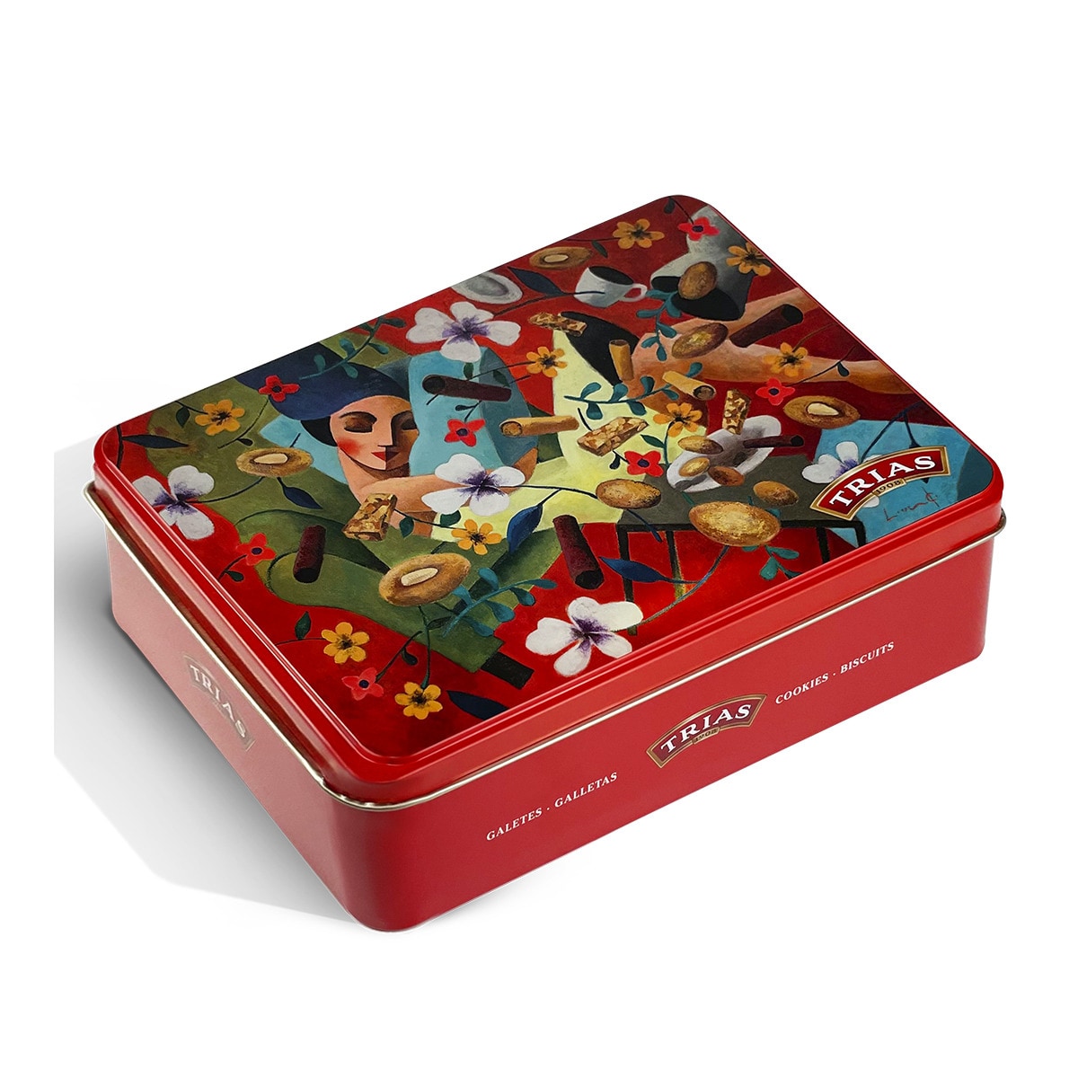 Las Galletas Surtidas Somiatrias de la marca Trias son un delicioso surtido de galletas elaboradas de manera artesanal, utilizando ingredientes 100% naturales y a base de almendra. Estas galletas se presentan en una atractiva caja metálica, que ha sido diseñada en exclusiva por el artista autodidacta Didier Lourenço, destacando por sus colores vivos y su representación de momentos dulces y placenteros. El surtido incluye variedades como Ametllats, Teules, Neulets y Crocants, ofreciendo una experiencia de sabor única y placentera. Se recomienda conservar las galletas en un lugar seco y fresco para mantener su frescura y calidad.