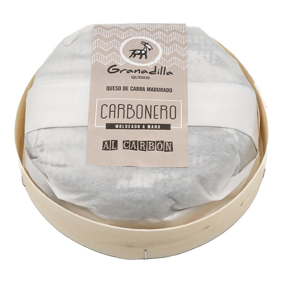 El Queso de Cabra Madurado Carbonero es un producto artesanal elaborado con leche cruda de cabras que pastan libremente en los montes del norte de Extremadura, España. Este queso de pasta blanda se caracteriza por su proceso de maduración con carbón vegetal comestible, lo que le confiere una corteza natural enmohecida y una textura cremosa y densa en su interior. Su sabor es suave y equilibrado, con notas ligeramente ácidas que se complementan con un gusto amargo y terroso proveniente del carbón. A medida que madura, su sabor se intensifica, desarrollando matices animales y recuerdos a frutos secos, mientras que su aroma es caprino con toques de madera. Se recomienda disfrutarlo a temperatura ambiente para apreciar plenamente su riqueza de sabores, siendo ideal para derretir sobre pan tostado, incorporarlo en ensaladas o simplemente acompañarlo con fruta fresca. Para su conservación, se debe mantener refrigerado entre 2º y 4º C.