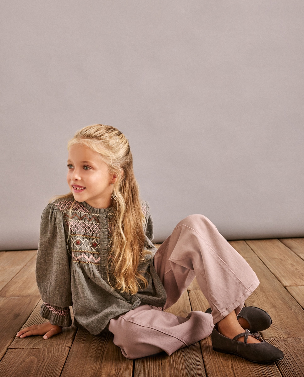 Chaleco fantasía con lazadas en tejido con lurex de niña