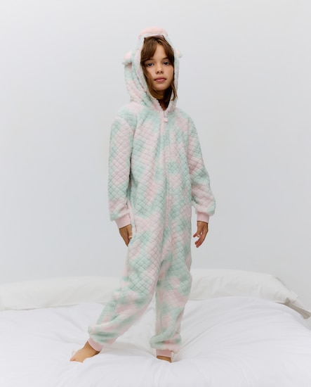 Pijama completo largo de velour con estampado fantasía de niña