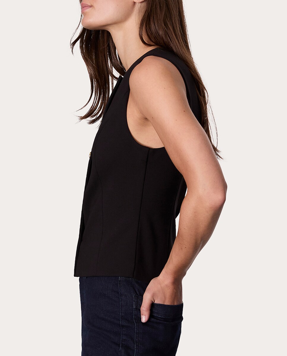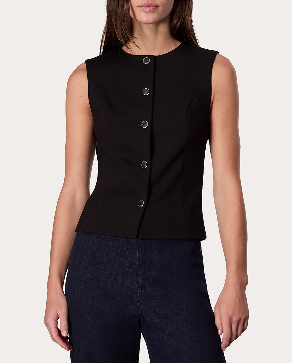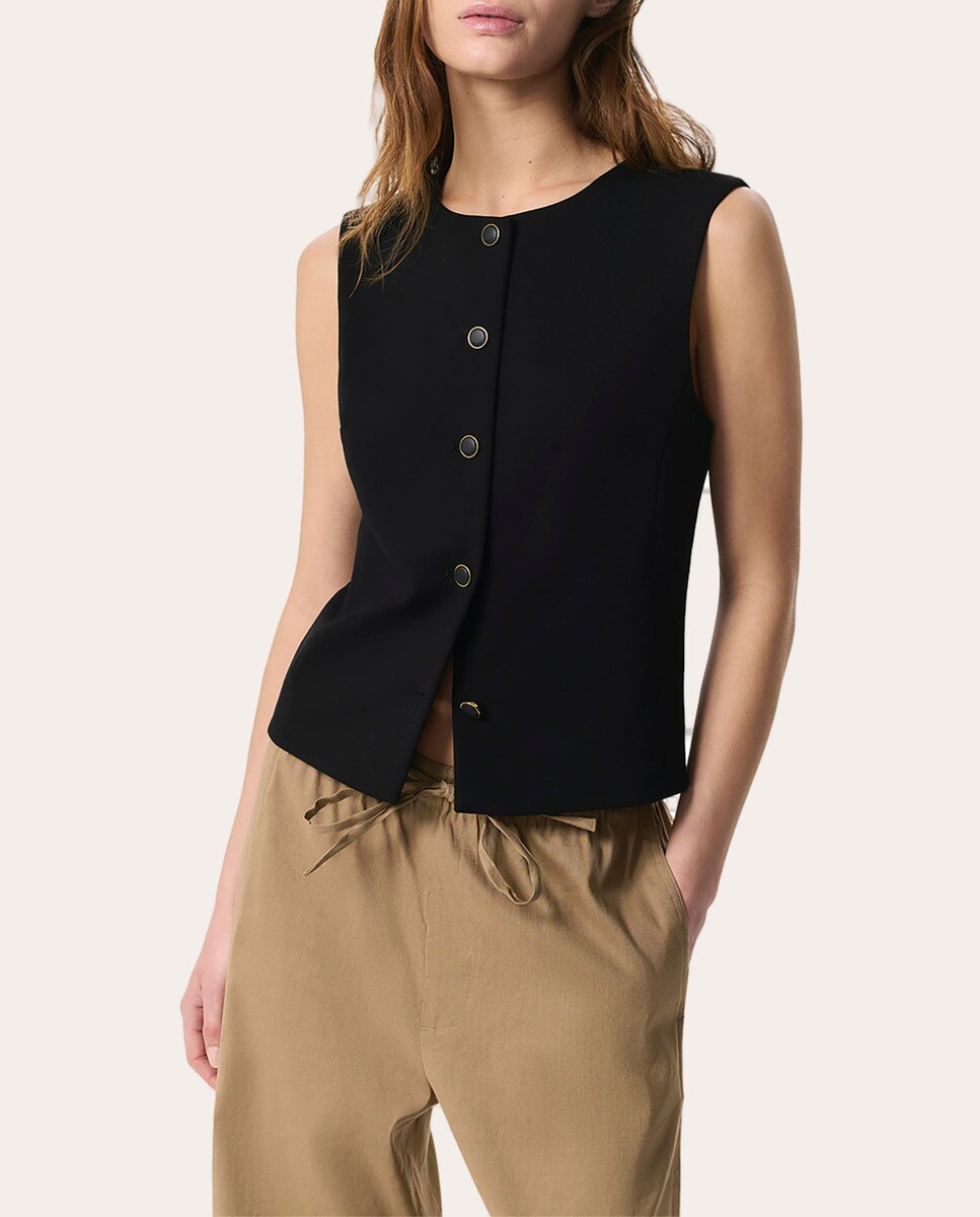 Chaleco Irina con cuello a la caja, silueta ligeramente ajustada y cierre abotonado.