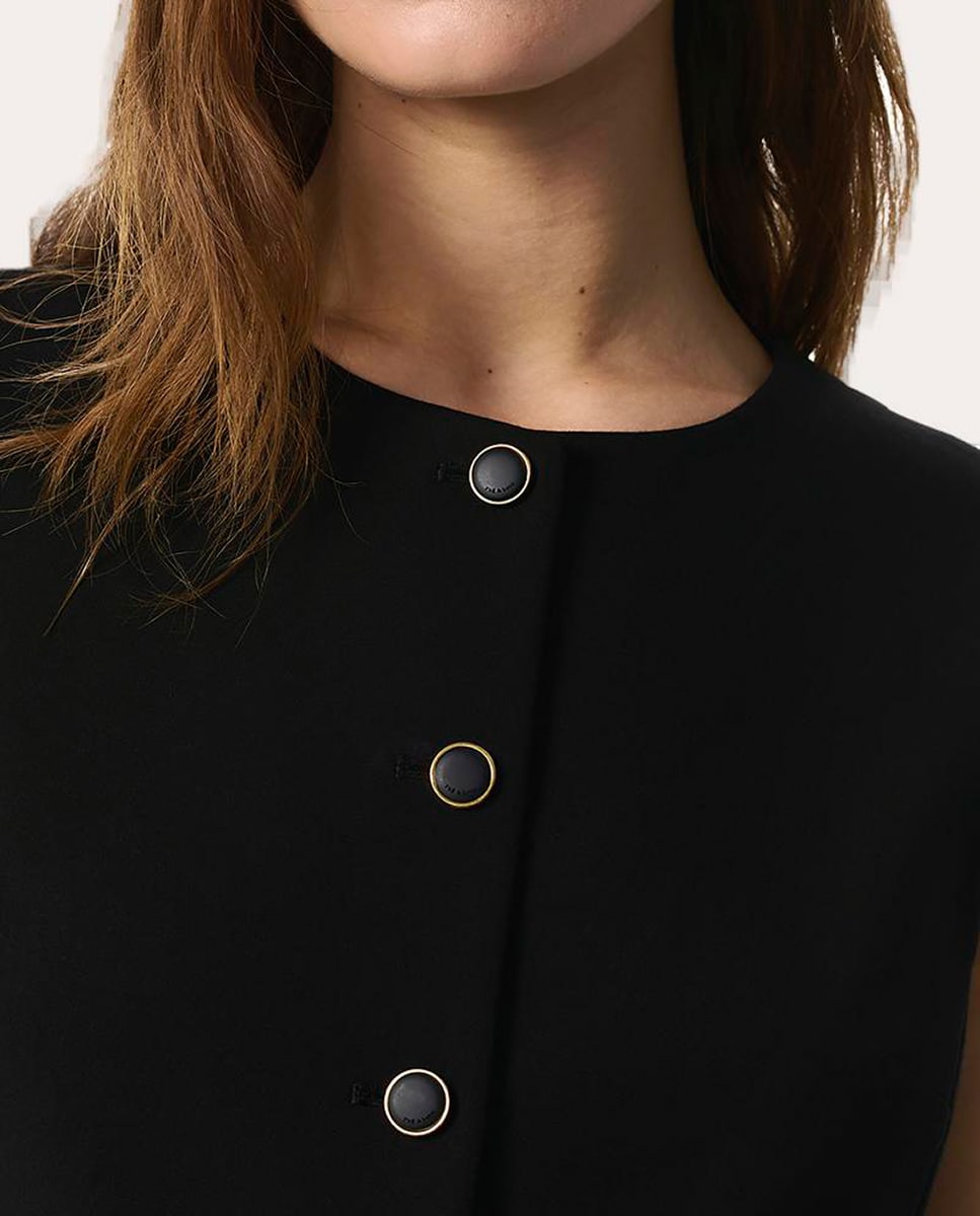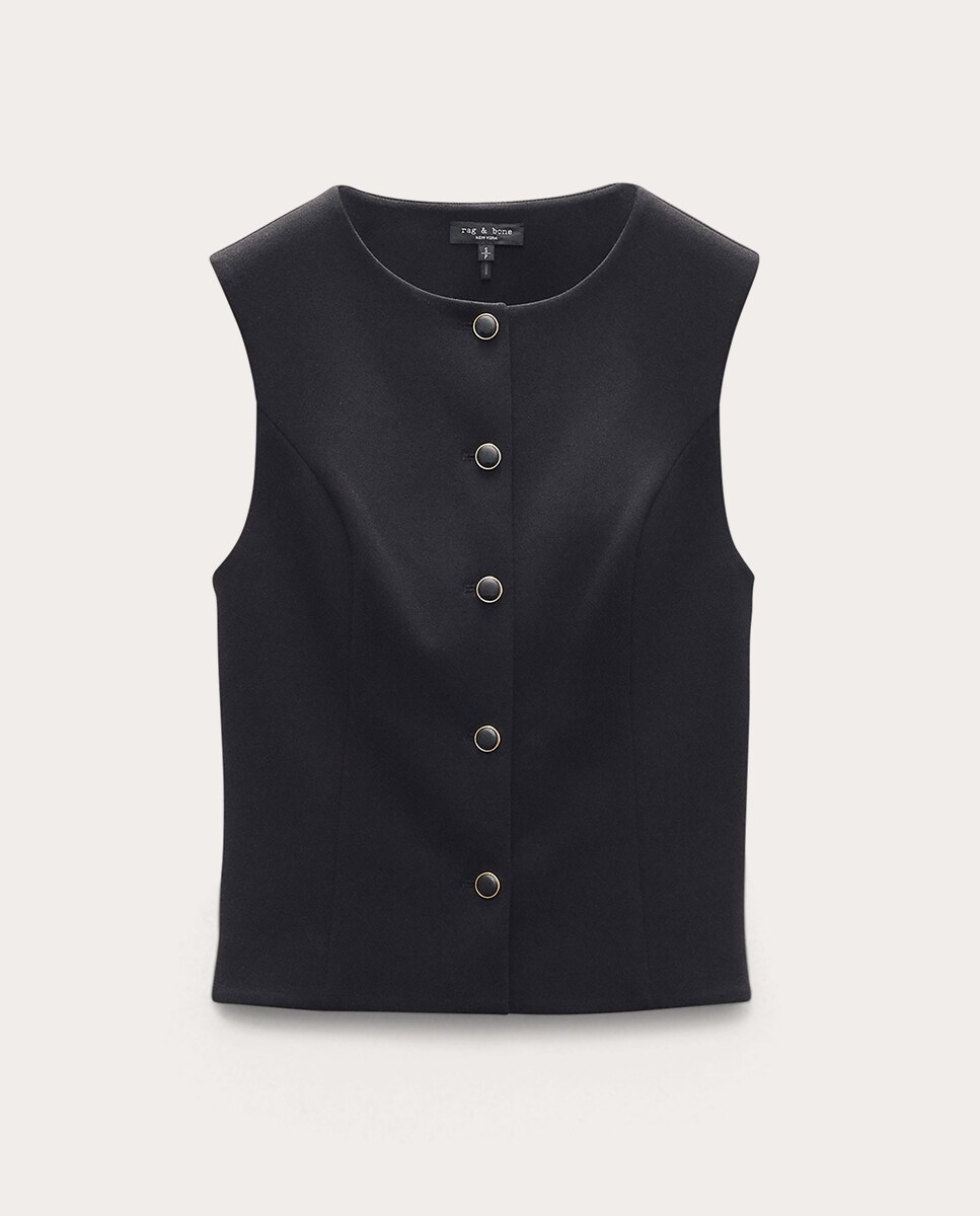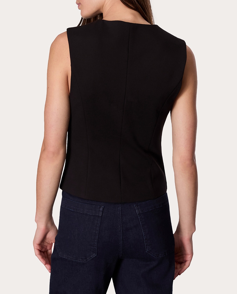 Chaleco Irina con cuello a la caja, silueta ligeramente ajustada y cierre abotonado.