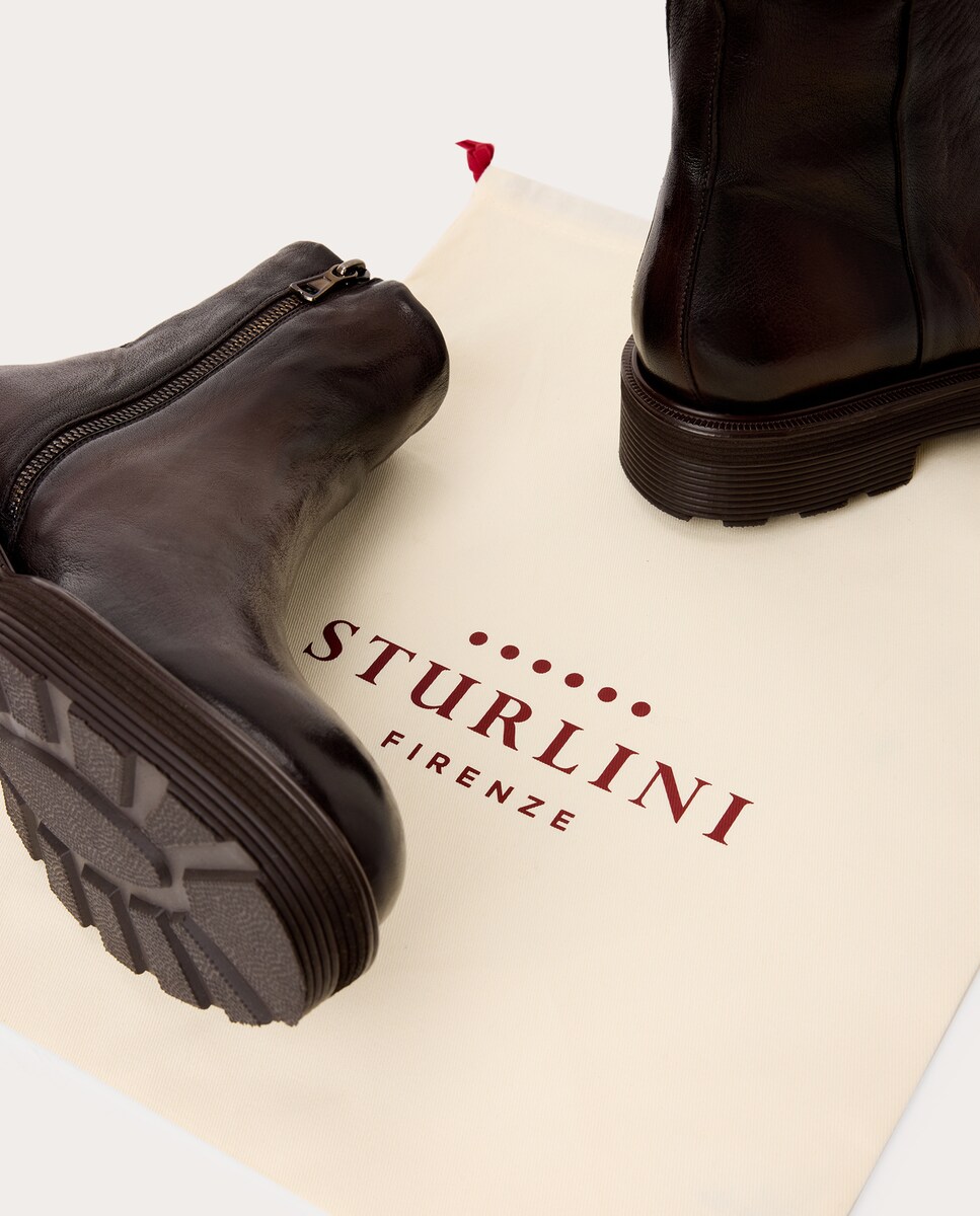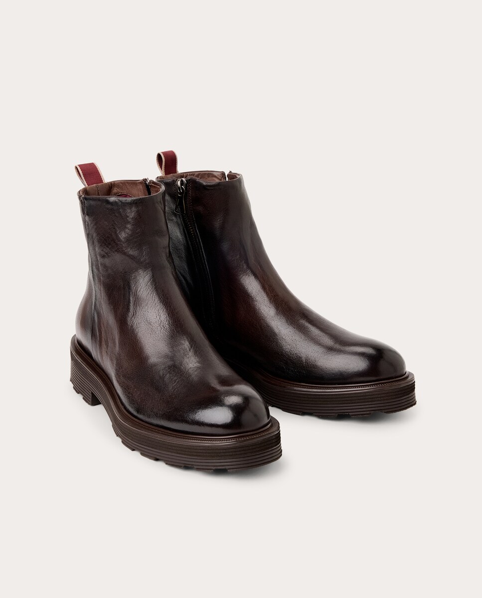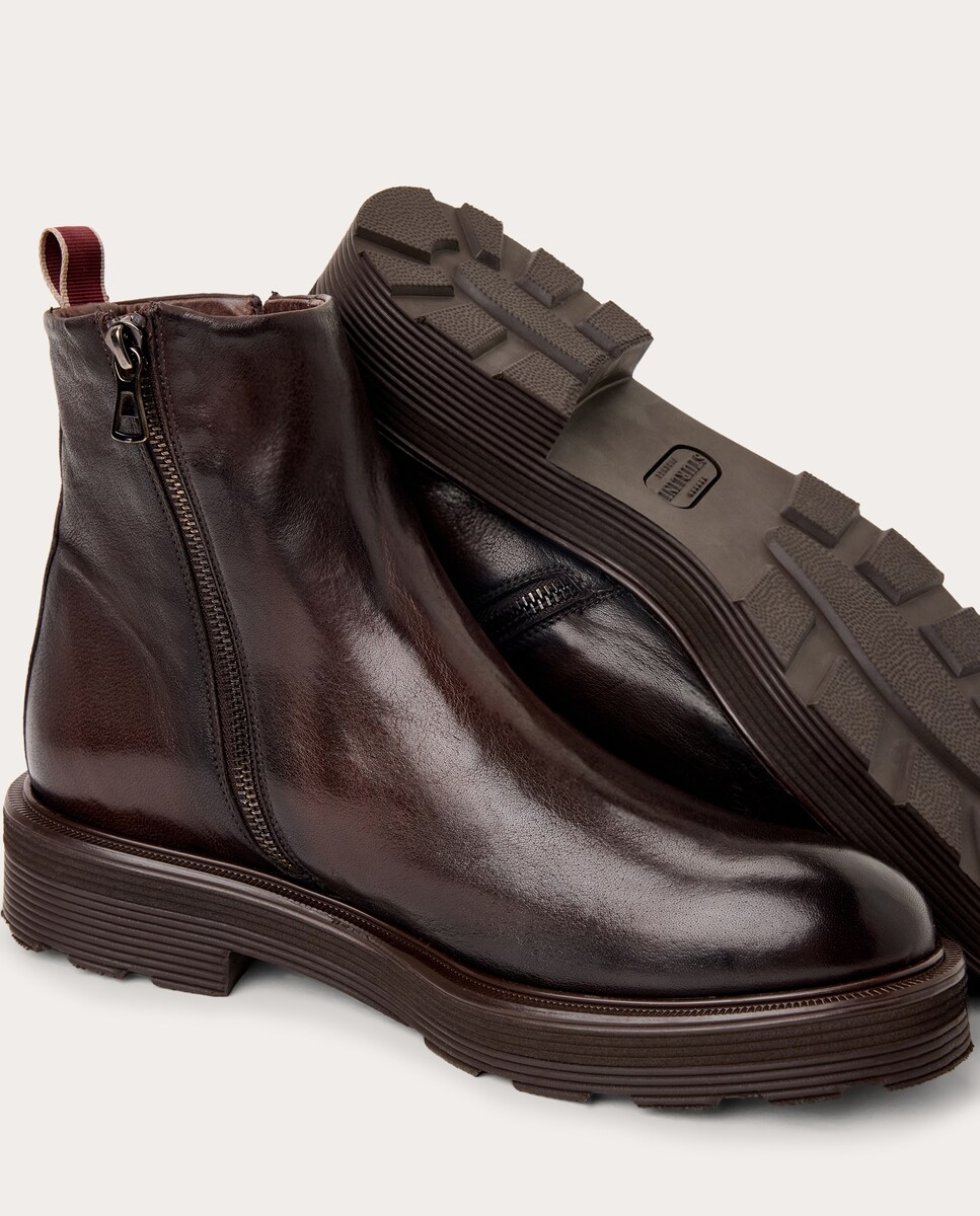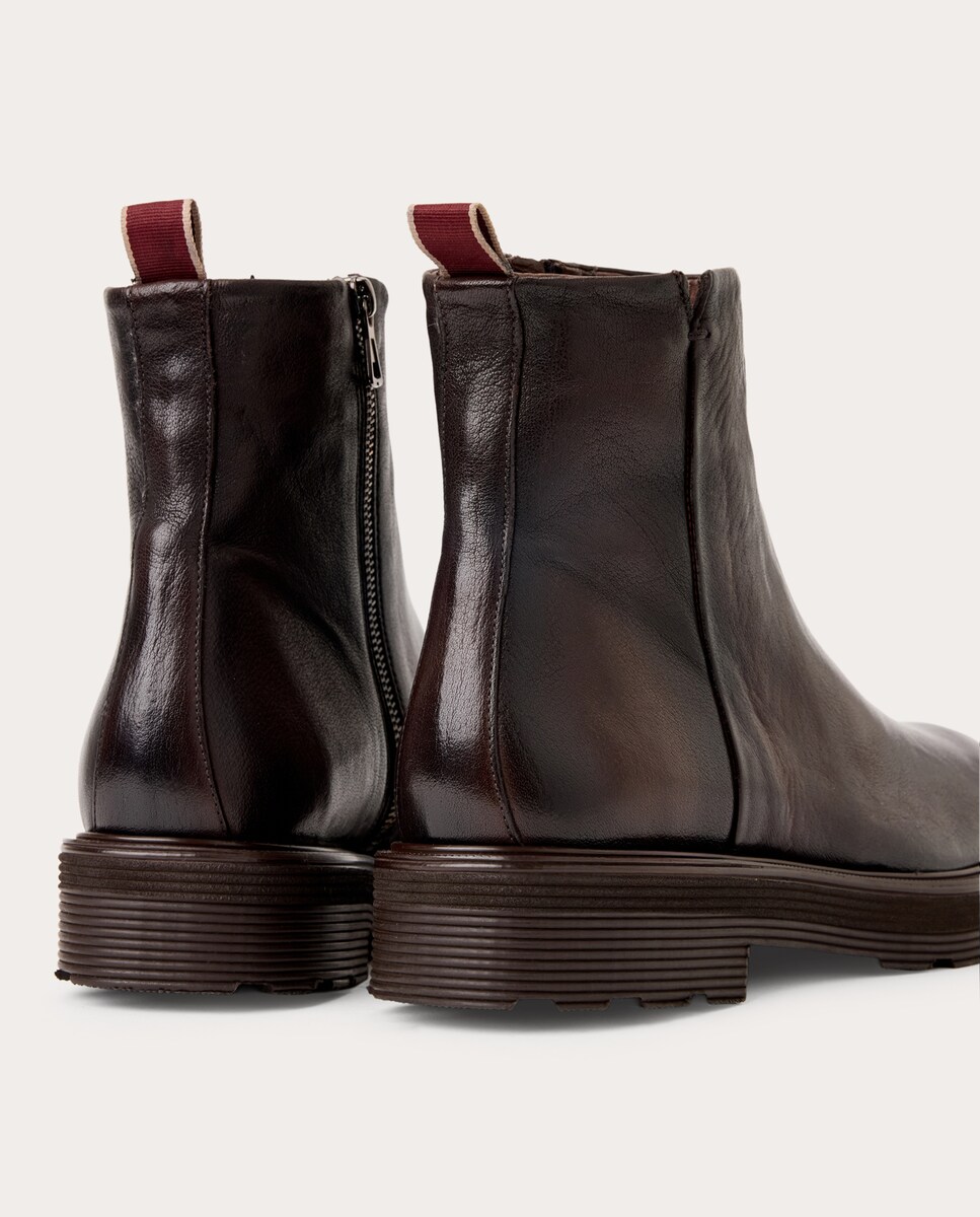 Botines de piel con silueta de punta redondeada y detalle de cierre de cremallera.