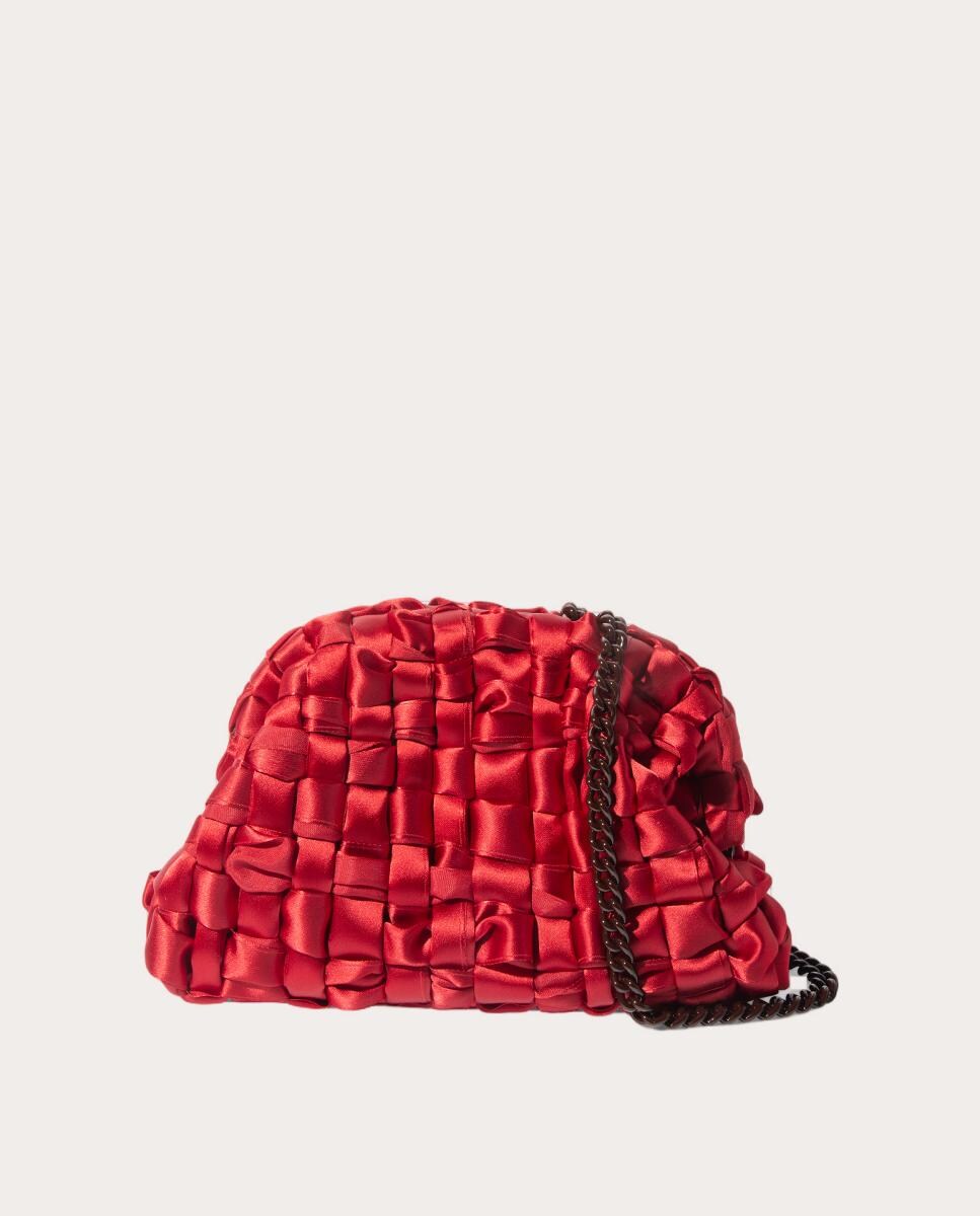 Bolso de mano Game en tejido trenzado satinado, correa de cadena y cierre a presión.