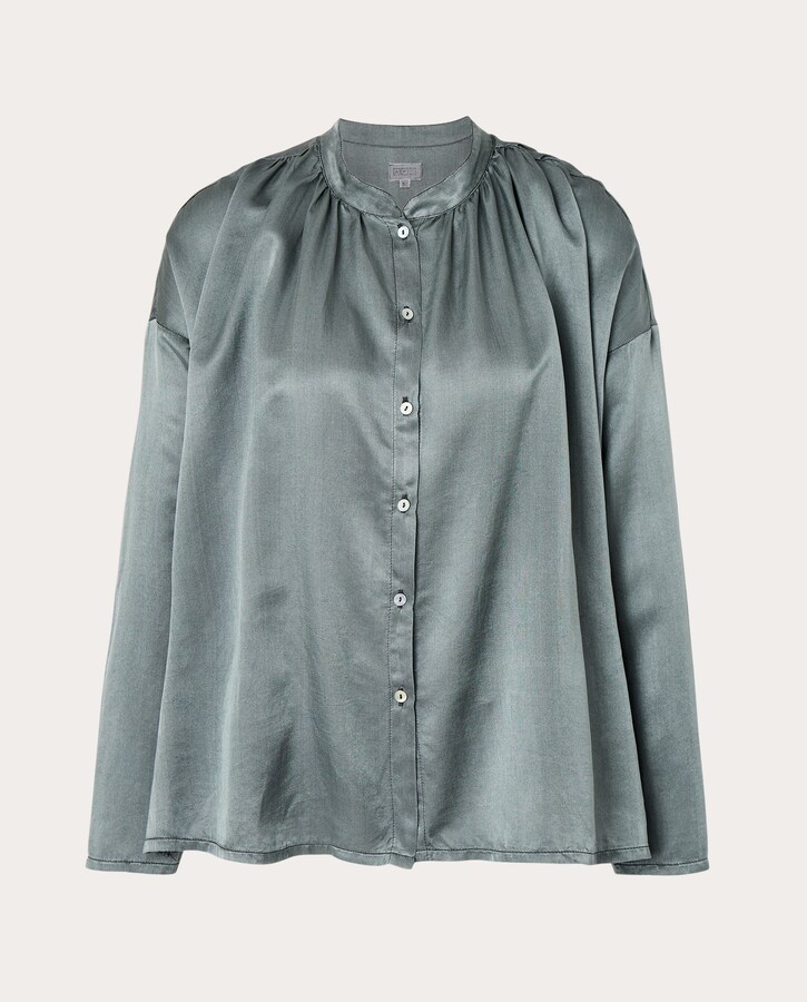 Camisa de algodón con mezcla de seda, cuello mao con escote en V y cierre abotonado.
