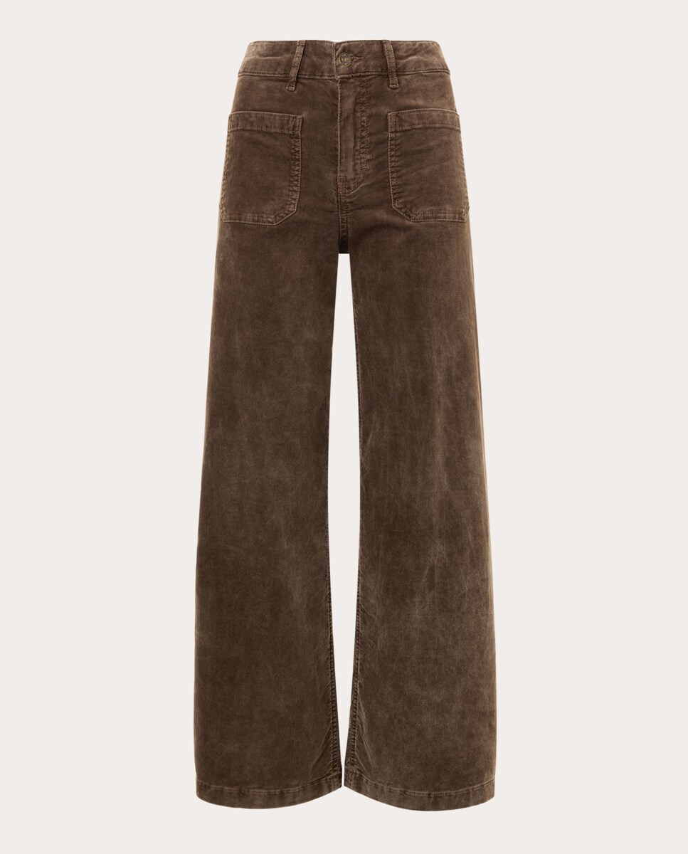 Pantalón vaquero recto Lucia con bolsillo de parche delanteros, detalle de trabillas y cierre de botón y cremallera.
