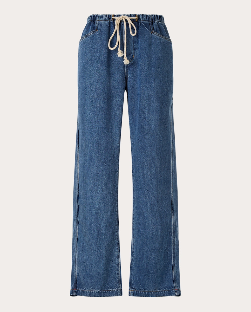 Pantalón recto Joey en tejido fluido, con bolsillos y cintura elástica fruncida.