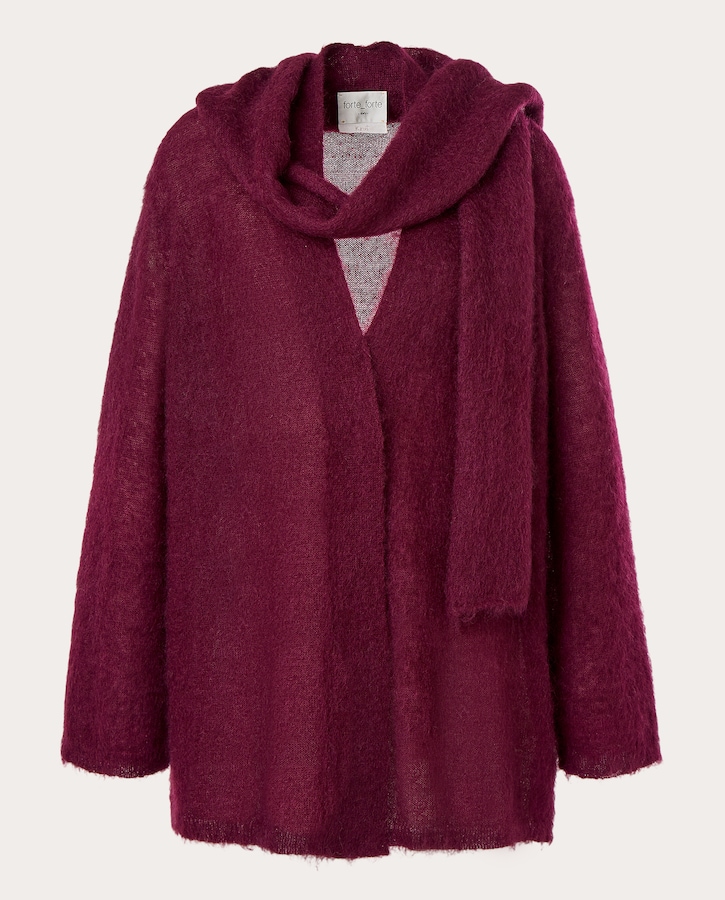Jersey largo de lana, con detalle de lazada al cuello, manga larga y ribetes acanalados.