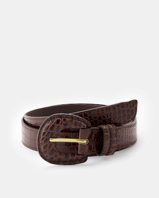Cinturón piel grabada con hebilla forrada