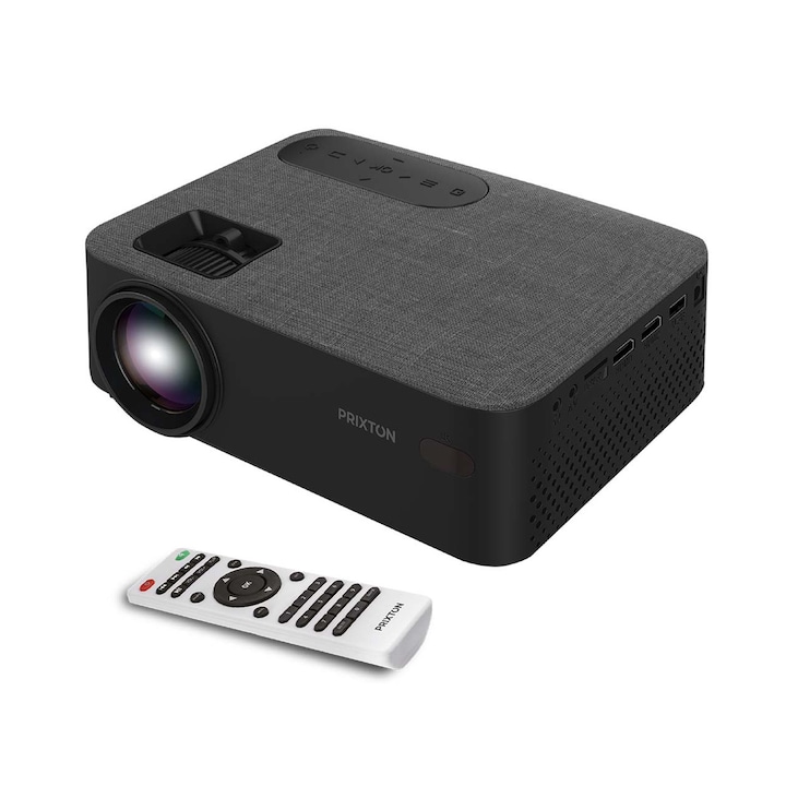 El proyector portátil Prixton Lumière es un dispositivo diseñado para cine en casa, que ofrece una resolución de 1920 x 1080 píxeles y es compatible con Full HD. Con una luminosidad de 5000 ANSI lúmenes, proporciona imágenes brillantes en diversas condiciones de luz. Este proyector cuenta con un sistema de corrección de imagen vertical de /- 15 grados, lo que permite un ajuste óptimo de la proyección. Incluye un mando a distancia y está equipado con dos altavoces estéreo que ofrecen un sonido de calidad. Su versatilidad permite la proyección de vídeos, audios, fotos y textos, convirtiéndolo en una herramienta útil para presentaciones. Entre sus conexiones se encuentran HDMI, VGA, USB 2.0, ranura microSD y AV. La distancia de proyección varía entre 1 y 5 metros, con una diagonal de proyección que abarca desde 30 hasta 150 pulgadas.