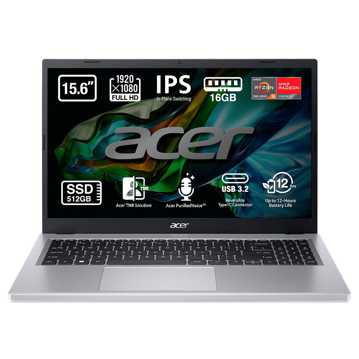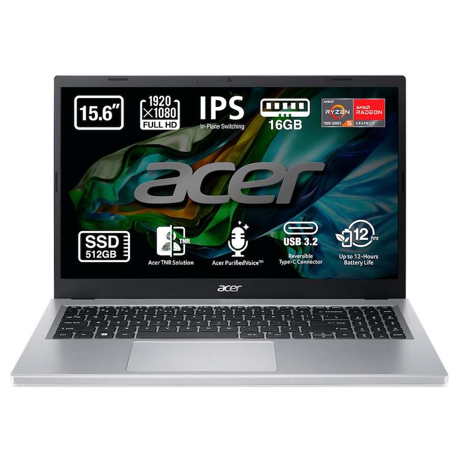 Portátil Acer Aspire 3, Ryzen 5, 16GB, 512GB SSD, 15.6", Sin SO
