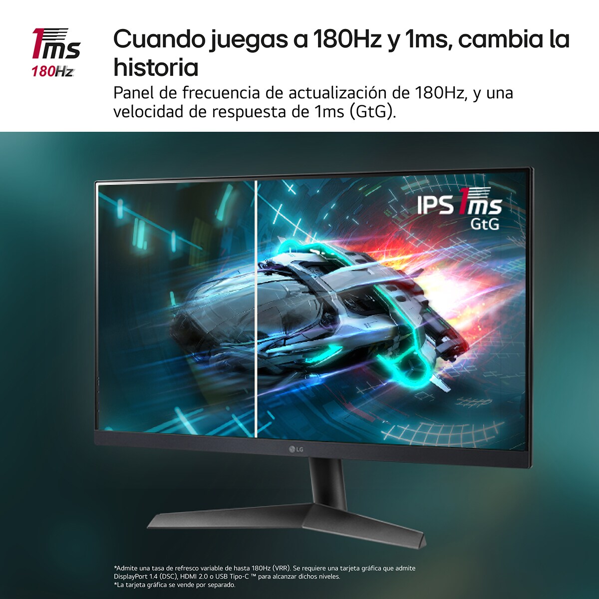 Panel IPS de frecuencia de actualización de 180Hz y con 1ms (GtG) de velocidad de respuesta.