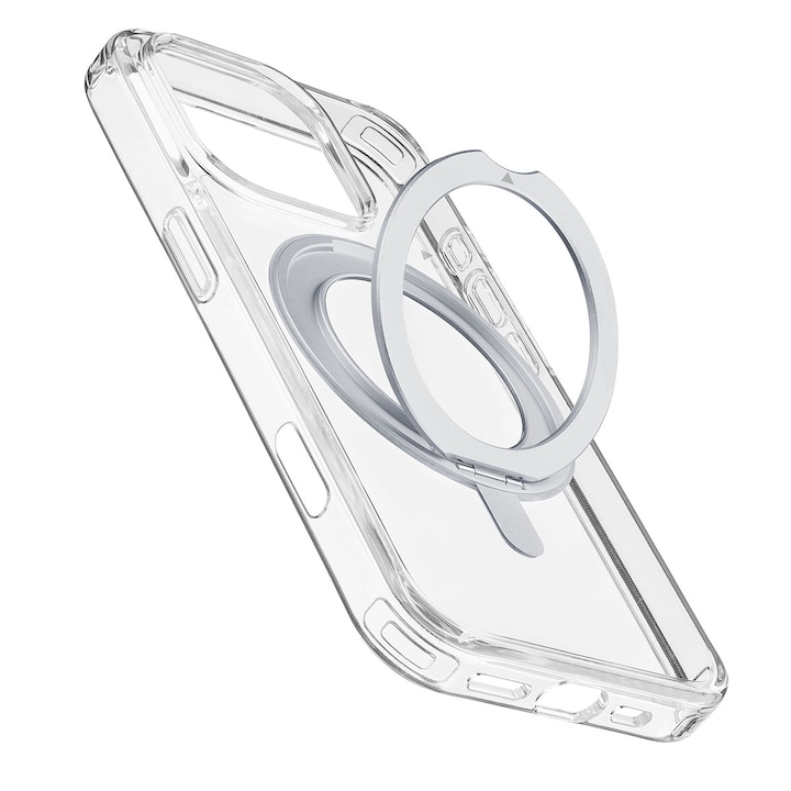 La funda transparente Cellularline Spin Mag es un accesorio diseñado para ofrecer protección y funcionalidad. Incluye un soporte de anillo giratorio que permite una rotación de 360°, facilitando su uso como soporte o base en diversas situaciones. El diseño asegura que el anillo se integre perfectamente en la funda cuando no está en uso, manteniendo la compatibilidad con el ecosistema MagSafe. Presenta bordes elevados alrededor de la pantalla y la cámara, proporcionando protección adicional contra golpes y caídas accidentales. Es compatible con dispositivos de la marca Apple, específicamente con el modelo iPhone 16 Pro Max.