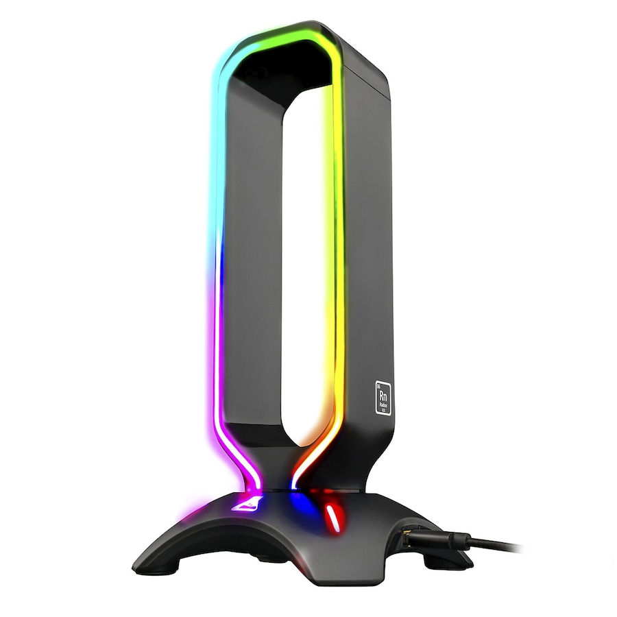 El Radon K-Stand es el accesorio perfecto para cuidar tus auriculares a la vez que ahorras espacio en tu escritorio. Este soporte para auriculares para juegos está retroiluminado: 7 colores se desplazan uno tras otro para una representación dinámica y resplandeciente.