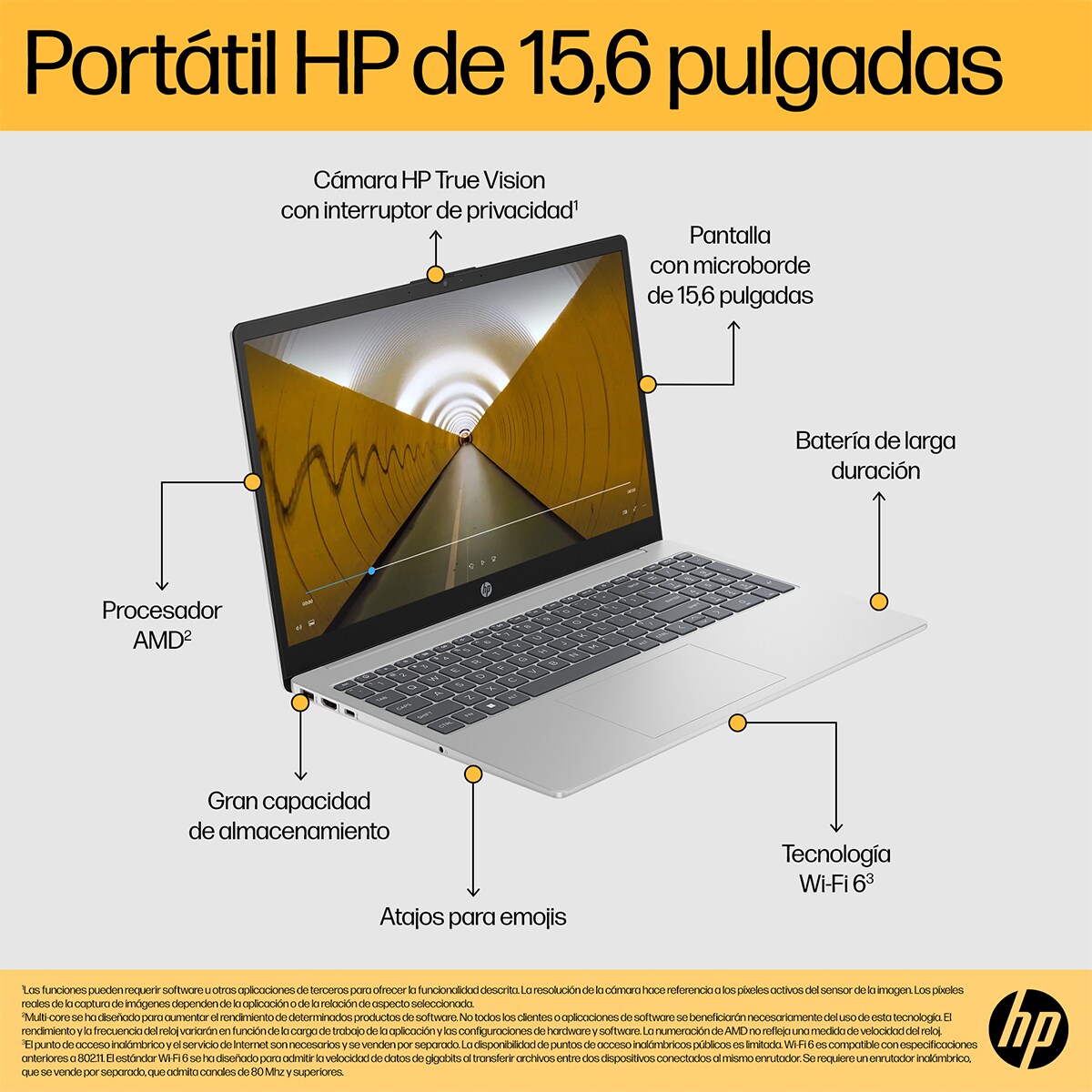 Portátil HP 15-fc0159ns, Ryzen 5-7520U, 16GB, 512GB SSD, 15,6", Sin SO