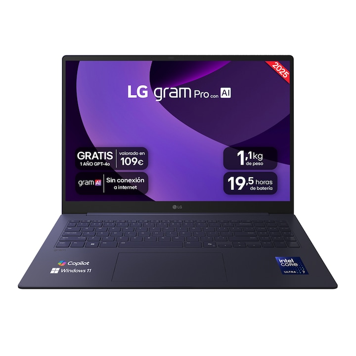 Portátil LG gram 16Z90TP, Intel Core Ultra 7-255H, 32GB, 1TB SSD, 16" OLED, W11