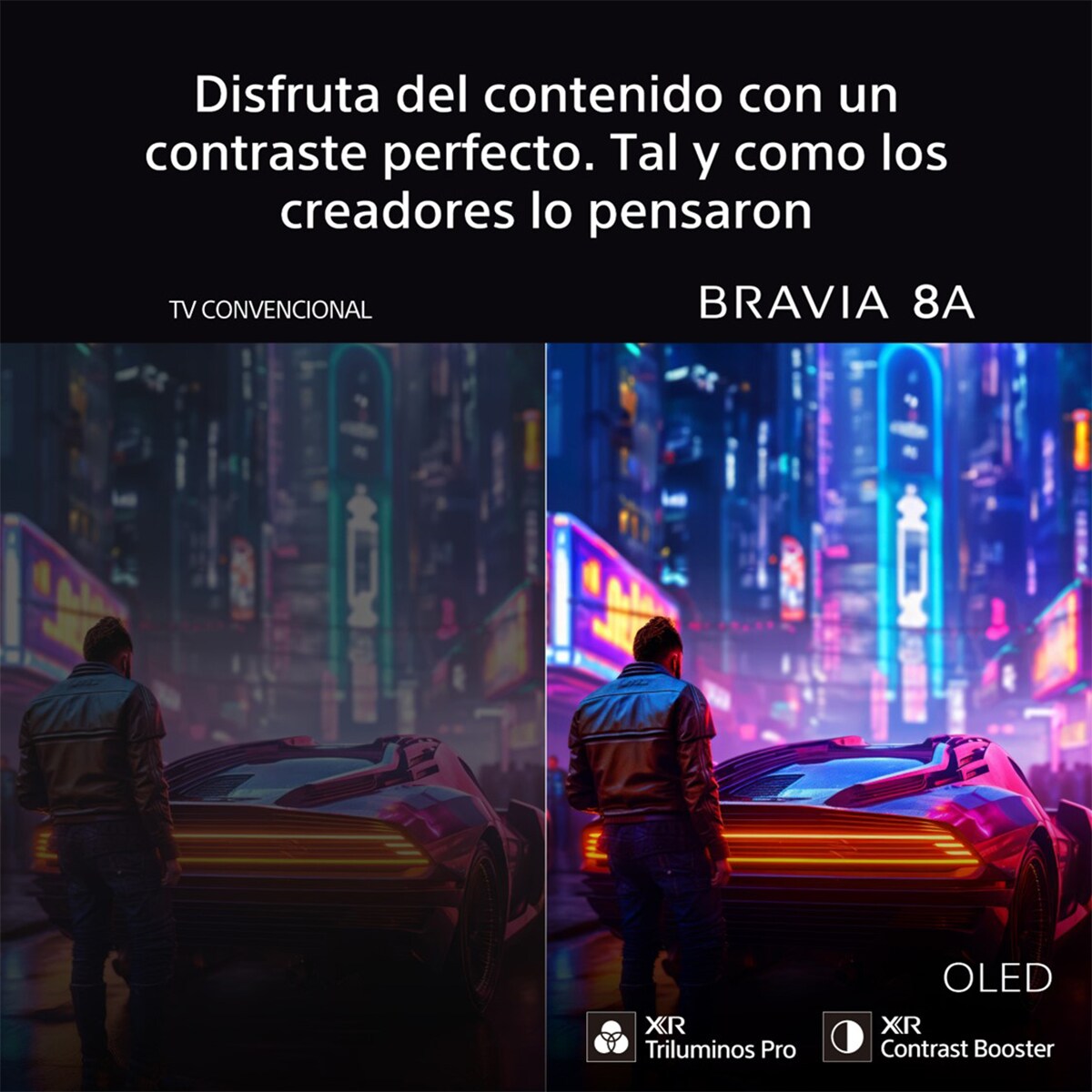 - OLED 4K HDR XR ClearImage XR SuperResolution XR ContrastBooster 15 XR TriluminosPro XR HDRRemaster XR Smoothing XR Motion Clarity, Auto mode Cognitive Processor XROLED: BRAVIA 8A lleva el fondo negro más puro, deslumbrantes destellos de estrellas y colores expansivos fuera de este mundo a tu sala de estar, llena de textura y realismo para imágenes similares al cine.XR Triluminos Pro: Nuestra amplia paleta de colores XR Triluminos Pro reproduce las diferencias sutiles en tono, saturación y matiz que verías en la vida real.XR Processor: Con un sistema de reconocimiento de escenas que comprende cómo los humanos ven y escuchan en la vida real, cada elemento de la imagen se detecta y analiza con una precisión magistral, y luego se optimiza para obtener un realismo definitivo.
