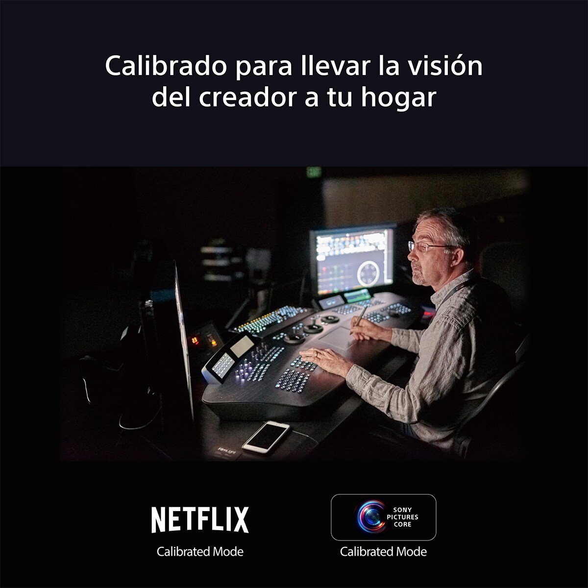 - Sonido desde la pantalla. Justo como en el cine Acoustic Surface Audio+: Nuestra tecnología Acoustic Surface Audio+ utiliza actuadores detrás de la pantalla que vibran de manera invisible para asegurar que el sonido provenga directamente de donde está ocurriendo en la pantalla para una inmersión cinematográfica. Acoustic Centre Sync: Conecte una barra de sonido Sony compatible, y el televisor se convertirá en el altavoz central para obtener una precisión máxima. Netflix Adaptive Calibrated Mode funciona con la optimización de luz ambiental de BRAVIA XR ajustando el brillo de la imagen de tus programas favoritos de Netflix a las condiciones de iluminación de la habitaciónCompleta equipación de cine en casa Dolby Vision y Atmos: Tecnologías que normalmente se encuentran en el cine, ahora en tu sala de estar. IMAX Enhanced y DTS:X: Recreando las escenas, sonidos y sensaciones del cine. Modo Calibrado: Estamos colaborando con los principales estudios de transmisión del mundo para desarrollar modos calibrados específicos para tus favoritos, incluyendo Netflix y Amazon Prime.