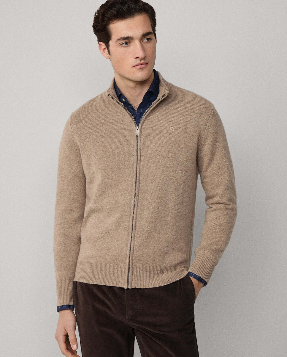 Cárdigan de hombre de lana de cordero con cremallera completa