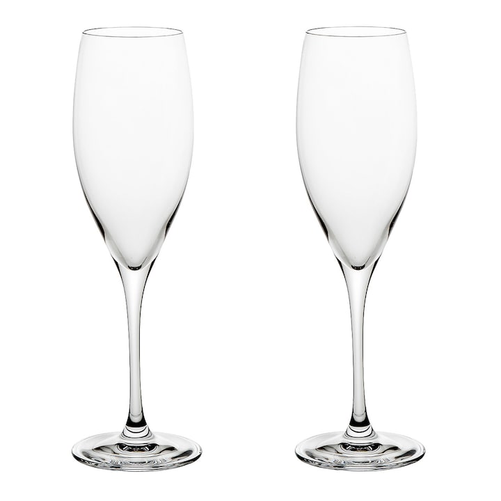 Su forma aflautada, ligera y de boca estrecha equilibra los sabores y aromas del champán, del cava o de cualquier otro vino espumoso conservando su elegante efervescencia. Un diseño que, además, resalta la textura cremosa de este tipo de bebidas, por lo que permite una excelente degustación.