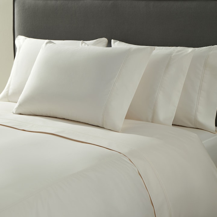 Confeccionado en satén 100% de algodón egipcio de 600 hilos, que da como resultado un tejido de calidad suave, transpirable y resistente.