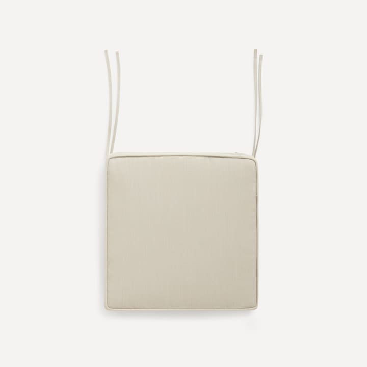 Cojín de poliéster 230 gr con aspecto de lino. Lleva doble vivo y es muy resistente a la intemperie. Podrás ajustarlo al asiento con unas sencillas cintas.