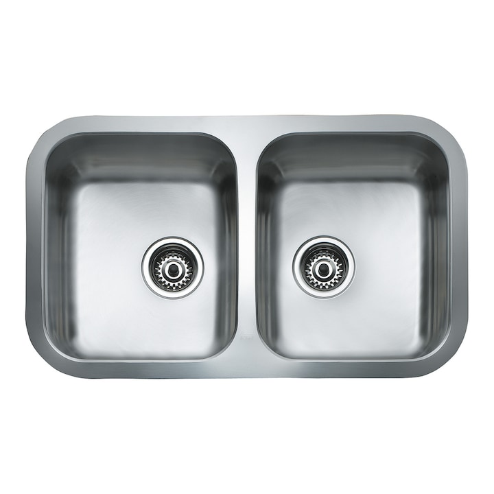 Fregadero con 2 senos bajo encimera de acero inoxidable para mueble de 90 cm